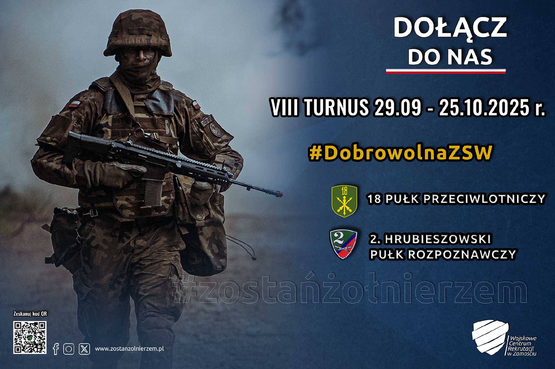 - VIII turnus Dobrowolnej Zasadniczej Służby Wojskowej, który odbędzie się w dniach 29.09 - 25.10.2025 r. w 18 Pułku Przeciwlotniczym Sitaniec Wolica, 2 Hrubieszowskim Pułku Rozpoznawczym