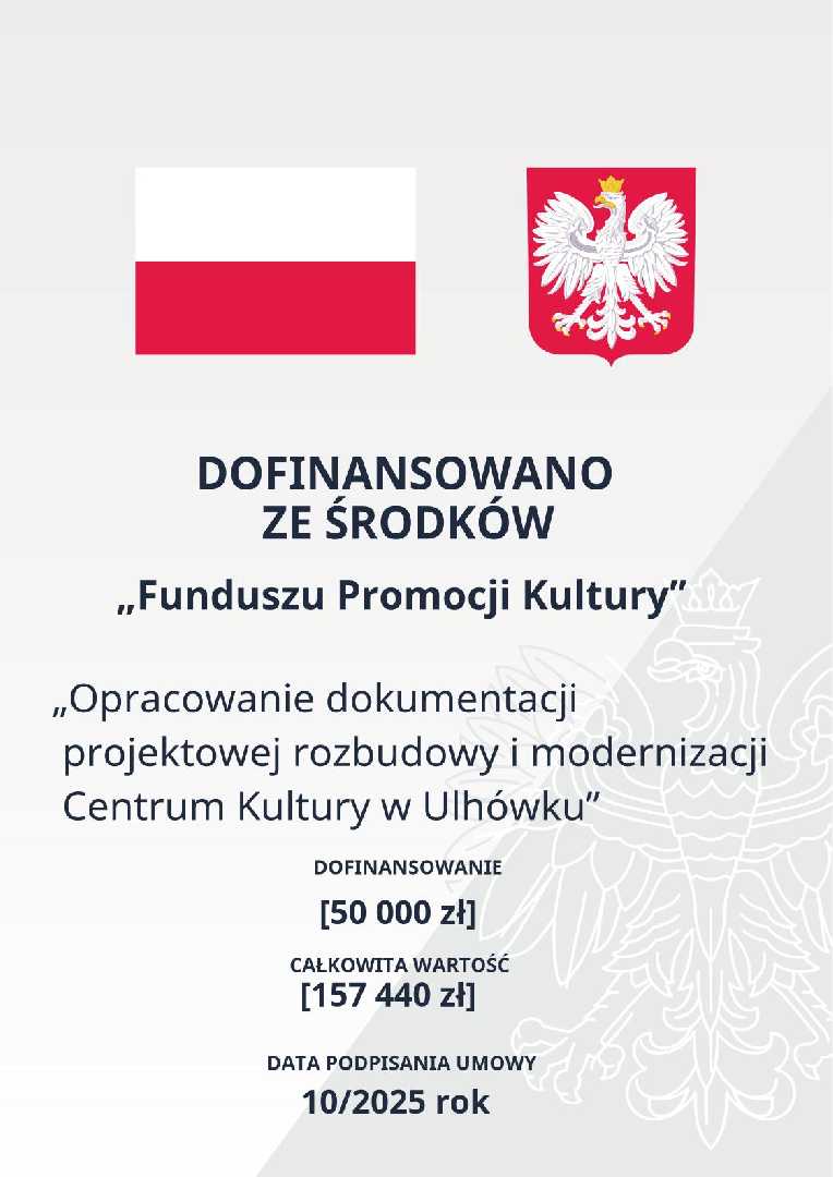 Tytuł projektu: „Opracowanie dokumentacji projektowej rozbudowy i modernizacji Centrum Kultury w Ulhówku”